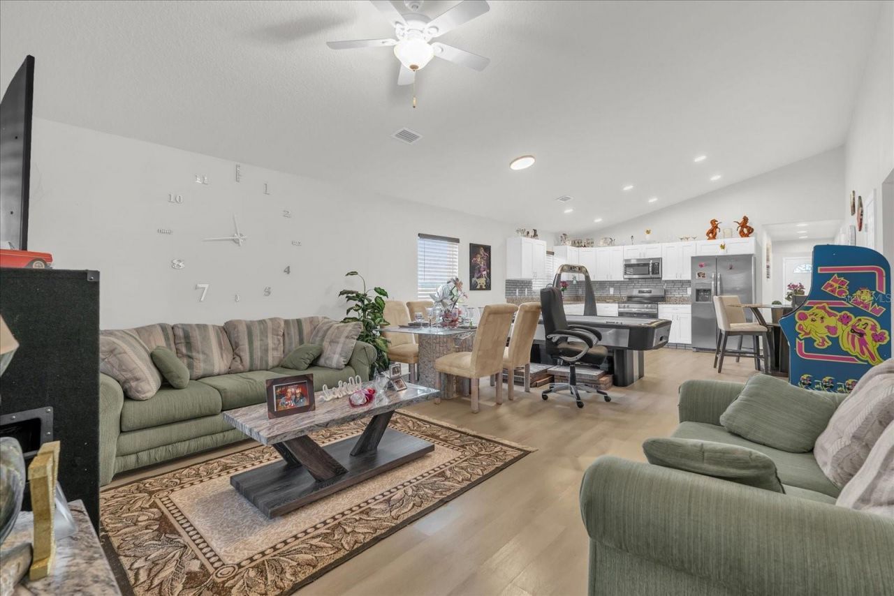 Welcome to this beautifully maintained 3-bedroom, 2-bathroom home with NO HOA, conveniently located in Lake Wales with easy access to shopping, dining, and major roadways. As you arrive, you'll be greeted by a charming covered front porch, the perfect spot to enjoy your morning coffee.Inside, the home features luxury vinyl plank flooring throughout and an open floor plan with vaulted ceilings, creating a bright and spacious feel that's ideal for everyday living and entertaining. The kitchen is well-appointed with granite countertops, a stylish backsplash, and stainless steel appliances, offering both functionality and modern appeal.The spacious primary suite includes a large walk-in closet and a private en-suite bathroom featuring dual sink granite vanity, a tiled walk-in shower, and updated fixtures. Two additional bedrooms provide comfortable space for family, guests, or a home office and share the hall bathroom with dual sink granite vanity and a tub/shower combination.Additional features include an inside laundry room and a 1-car garage. Situated in Flood Zone X, this 1,542 sq ft home offers both comfort and convenience in a desirable Lake Wales location.