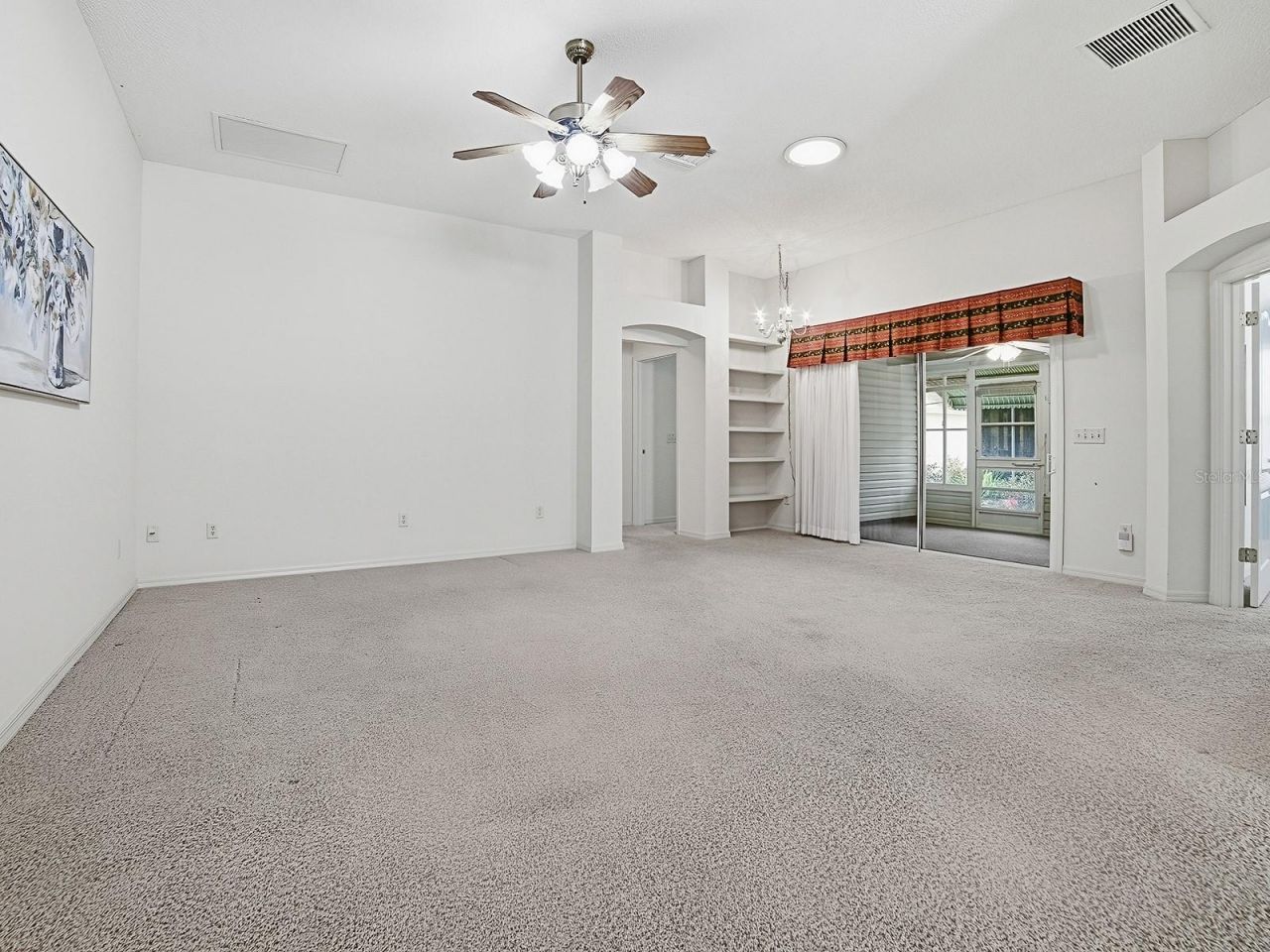 BOND PAID on this charming Cypress model 3-bedroom, 2-bath home with an enclosed Florida Room and 2-car garage is located in the desirable Village of Woodbury. Lovely landscaping sets the tone for this home. Step inside to the welcoming foyer with a coat closet, leading to a spacious living room enhanced by a SOLAR TUBE, filling the space with beautiful natural light. The formal dining room, just off the living room, provides ample space for a large table, perfect for entertaining family and friends. The kitchen features a breakfast bar, solid wood cabinetry with convenient pull-out shelves, and a large pantry to meet all your storage needs. Adjacent to the kitchen, the dinette with bay window creates a bright and inviting space for casual dining. The primary suite offers vaulted ceilings and a private en-suite bath with tile flooring, dual sinks, and a walk-in shower. The split floor plan provides excellent privacy, with guest bedrooms 2 and 3 located on the opposite side of the home, along with a guest bathroom. Step through the living room to the ENCLOSED LANAI/Florida Room, the perfect spot to relax with your morning coffee or unwind in the evening. The indoor laundry room is generously sized and includes cabinets, shelving, a utility sink, and space for a desk or folding area, adding great functionality. Additional highlights include, Roof replaced in 2020, HVAC replaced in 2021, 2-car garage with pull-down attic stairs, and sliding screen doors for great airflow. This home offers an excellent location with Mulberry Grove Recreation Center less than 10 minutes away by golf cart. It is also conveniently close to First Responders Regional Recreation Center, Lopez Legacy Championship Golf Courses, the VA Clinic, and provides easy access to Hwy 441 for shopping, dining, and medical facilities.