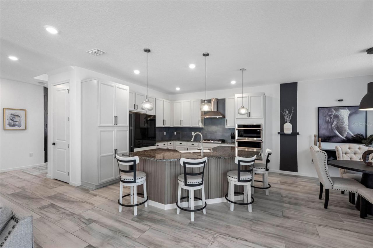 Gorgeous pool home in the gated resort-style community of MiraBay is now ready for a new owner! This well appointed home features many upgrades and designer touches you won't find in your average new construction home. This home boasts 4-bedrooms, 3-baths, a 2 car garage and 2,532 sq ft heated/3,202 SqFt total under roof. There is a bedroom on the first floor currently used as an office with a full bath and 3 bedrooms and a generous sized loft on the second floor with 2 additional bathrooms. This practically new home, built in 2022 by Park Square homes offers a gourmet kitchen, dining, living room open concept with sliders making indoor/outdoor entertaining a breeze. Enjoy beautiful quartz countertops, large format tile backsplash, farmhouse sink, stainless steel appliances, 42 soft gray wood cabinetry, stainless vented hood, gas cooktop and island with counter height seating. The downstairs has soft gray tile throughout. Enjoy swimming year round in your screened-in, heated salt-water pool with shell lock pavers, generous sized covered lanai, mature landscaping and vinyl privacy fence. The staircase has beautiful accent handrails inviting you upstairs to the generous sized loft showcasing a beautiful statement window with views of green space. The spacious master retreat features double door entry, a gorgeous wood coffered ceiling, a walk-in closet with an organization system, an en-suite bath with quartz counters, double sink wood vanity, loads of storage and a gorgeous walk-in shower glass enclosure with elegant floor to ceiling tile. Two more spacious bedrooms are past the loft and share a dual vanity full size bath. Give yourself the gift of resort-style living in MiraBay where you will have access to two pools, an impressive clubhouse, a fitness center with fitness classes, café, lounge, water sports vessels, walking trails, playgrounds, basketball, tennis, and pickleball courts. Golf cart friendly community with friendly neighbors and community events. Make an appointment today so you can start living the lifestyle you deserve.