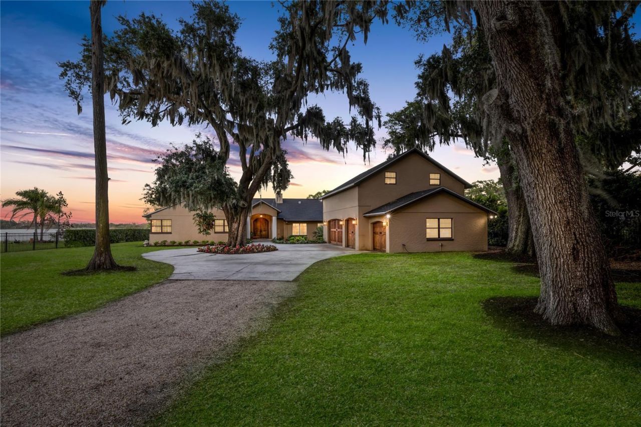 Positioned on the coveted shores of Lake Jessamine-widely regarded as one of Orlando's premier private lakes for its exceptional water quality and elite-level boating, skiing, and wakeboarding-this expansive lakefront estate delivers a rare combination of scale, privacy, and true lifestyle appeal. Set on approximately 3 acres of high and dry land, the property features a semi-circular driveway, 4-car garage, and a thoughtfully designed floor plan oriented to capture sweeping lake views from the kitchen, living room, primary suite, and an additional bedroom. The dining room and living room are seamlessly connected and flow directly into the kitchen, creating an open, functional layout ideal for both everyday living and entertaining. The kitchen is outfitted with custom cabinetry, granite countertops, stainless steel appliances, a premium Thermador range, and pot filler, anchoring the home's main living space. A dedicated game room with a butler's pantry adds another layer of flexibility and entertainment potential. The oversized primary suite offers a private retreat with panoramic water views, a large walk-in closet, dual granite vanities, soaking tub, and glass-enclosed walk-in shower. Outdoor living is elevated with a resort-style pool featuring LED lighting, an expansive entertainment area complete with refrigerator, firepit, and a projector with large screen, plus overhead misters for year-round comfort. A private dock provides direct access to the lake, allowing full enjoyment of its clean, recreational waters. Conveniently located just minutes from Downtown Orlando, major roadways, shopping, dining, and Orlando International Airport, this property offers a compelling blend of luxury, accessibility, and true Central Florida lakefront living.
