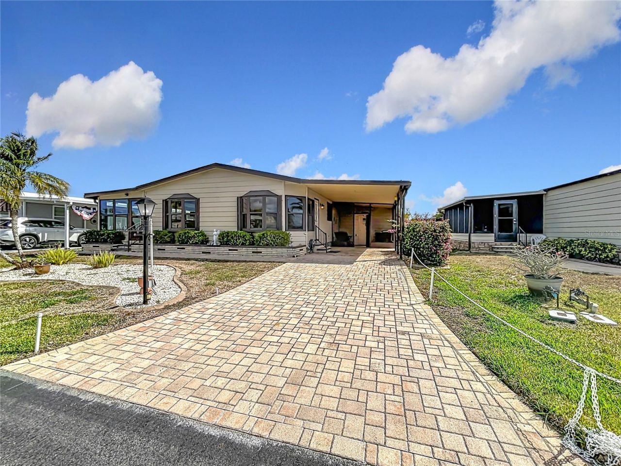 This well-maintained two-bedroom, two-bathroom home on a peaceful and quiet street has been thoughtfully updated and lovingly cared for. As you step inside, the dining area flows easily into the kitchen, where newer soft-close cabinetry, solid surface countertops, a tiled backsplash, roll-out pantry drawers, and a solar tube skylight make the space both bright and functional. The living room opens through sliding doors into a glass-enclosed Florida room - perfect for morning coffee, an afternoon read, or simply enjoying the light without the heat.The primary suite offers a walk-in closet and an updated bathroom with a newer vanity, walk-in shower, and linen storage. Just off the primary bedroom, you'll find a surprisingly spacious laundry room complete with a stacked washer and dryer, abundant cabinetry, and even a built-in desk space - practical and convenient!The guest bedroom includes a double closet, and the guest bath has been refreshed with a newer vanity and a tub/shower combination.Nearly every room feels bright thanks to multiple solar tube skylights. Additional upgrades include newer double-pane windows, a vapor barrier added in 2023, and a brand-new roof in 2025 so you can have peace of mind in your new Florida home. The paver driveway leads to a screen-enclosed utility room, giving you even more storage space for tools, hobbies, or seasonal items.La Casa is set among native trees and mature landscaping and is a welcoming community of 974 homes surrounded by generous green space and eight peaceful lakes. Located between Sarasota and Fort Myers, you're close to shopping, dining, golf, fishing, and everything Southwest Florida is known for all while being tucked into a relaxing and quiet environment perfect for enjoying the Florida lifestyle.If you've been looking for a place that feels easy from the moment you arrive, this might be it.